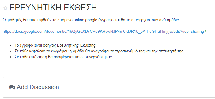 Οι απαντήσεις των μαθητών (ανά ομάδα) στην παραπάνω wiki ερώτηση υπάρχουν στον υπερσύνδεσμο